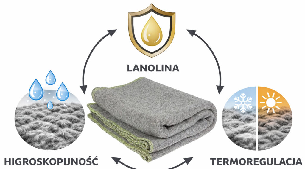 Koc zatrzymuje ciepłe powietrze przy ciele, tworząc warstwę ochronną. Polskie koce wojskowe są bardzo cenione.